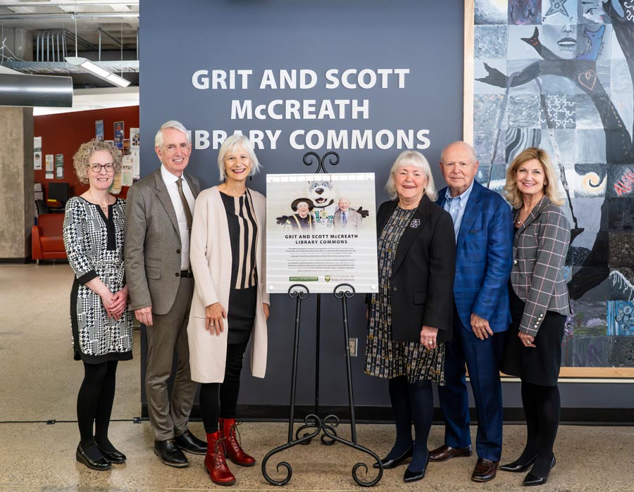 The university has now dedicated a study space on the ground floor of the Murray Library that will be known as The Grit and Scott McCreath Library Commons. A plaque and signage bearing their names will be installed in the area to honour them.